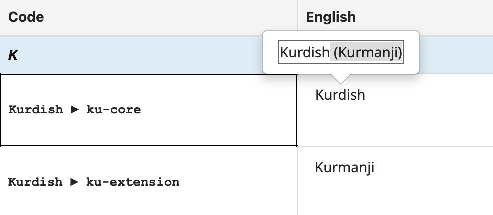 2. One of the variants does not have a qualifier (eg, Kurdish, Sorani Kurdish)